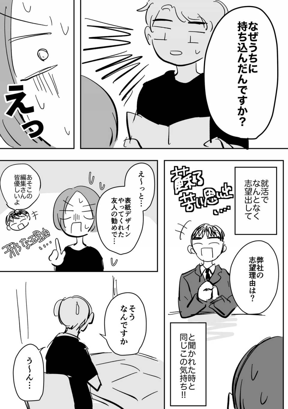 | … | 13無念Nameとしあき23/12/04(月)19:22:45No.1163237783持ち込みが就活なら企業研究は勿論しているのだろうからなぜうちに持ち込んだのか?と聞かれたら即答できないと論外だよね |