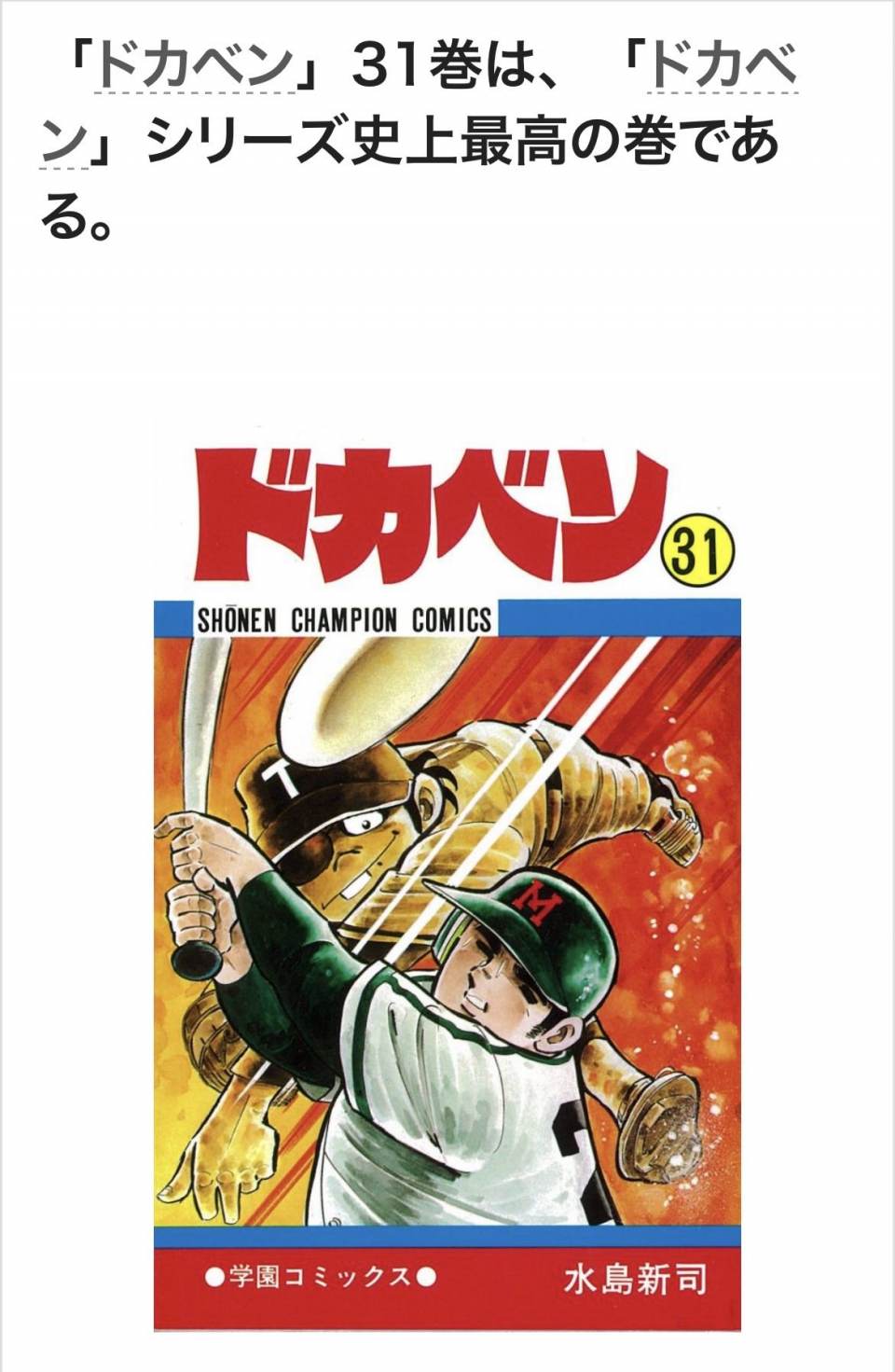 | … | 54無念Nameとしあき24/01/10(水)21:47:55No.1174618078>31巻がドカベン史上最高傑作と語るファンは多い |