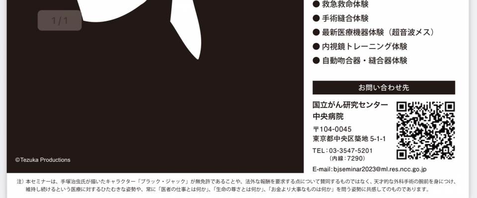 | … | 83無念Nameとしあき24/01/26(金)13:29:08No.1179639754 1706243348737.jpg-(179692 B) ![]() 国立がん研究所センターが小中学生を対象に外科医の素晴らしさを体験してもらう「ブラックジャックセミナー」の案内ポスターの下にも説明書きがあって「ああ…変な苦情が来たんだろうな」と思った |