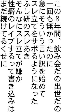 | … | 971無念Nameとしあき24/02/04(日)02:38:43 ID:ykMA7mnANo.1182511679いや同級生がいきなり性欲を持つ男になって自分に視線向けてくるのは堪らなく気持ち悪いと思うだろ普通 |