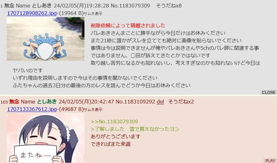 | … | 31無念Nameとしあき24/02/06(火)00:53:12No.1183196578>これまでのバレスレのログ全部警察に提出して |