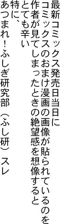 | … | 44無念Nameとしあき24/02/06(火)01:25:16No.1183202021ふし研スレ平気で全コマ貼られててそれを誰も咎めない異常な雰囲気だったから去ったけど今こうなってんのか |