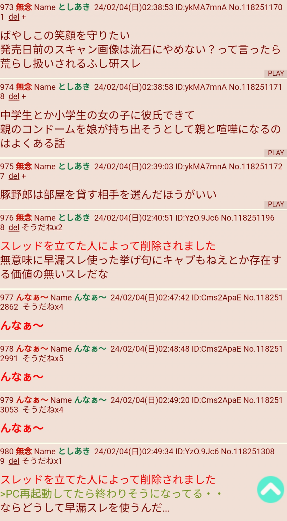 | … | 309無念Nameとしあき24/02/06(火)05:36:01No.1183218935>ちなみに連投ツールと並行で単発IDルーパチ繰り返してレス投稿もするので |