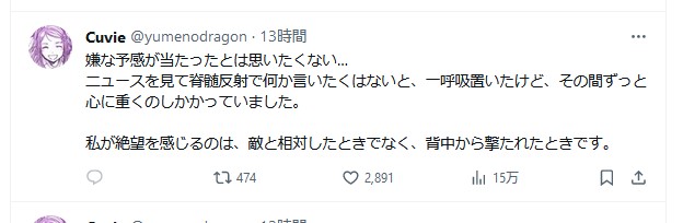 | … | 76無念Nameとしあき24/02/08(木)07:23:59No.1183827420ツイッターで漫画家や小説家が続々と非難のツイートしてるのヤバいな |