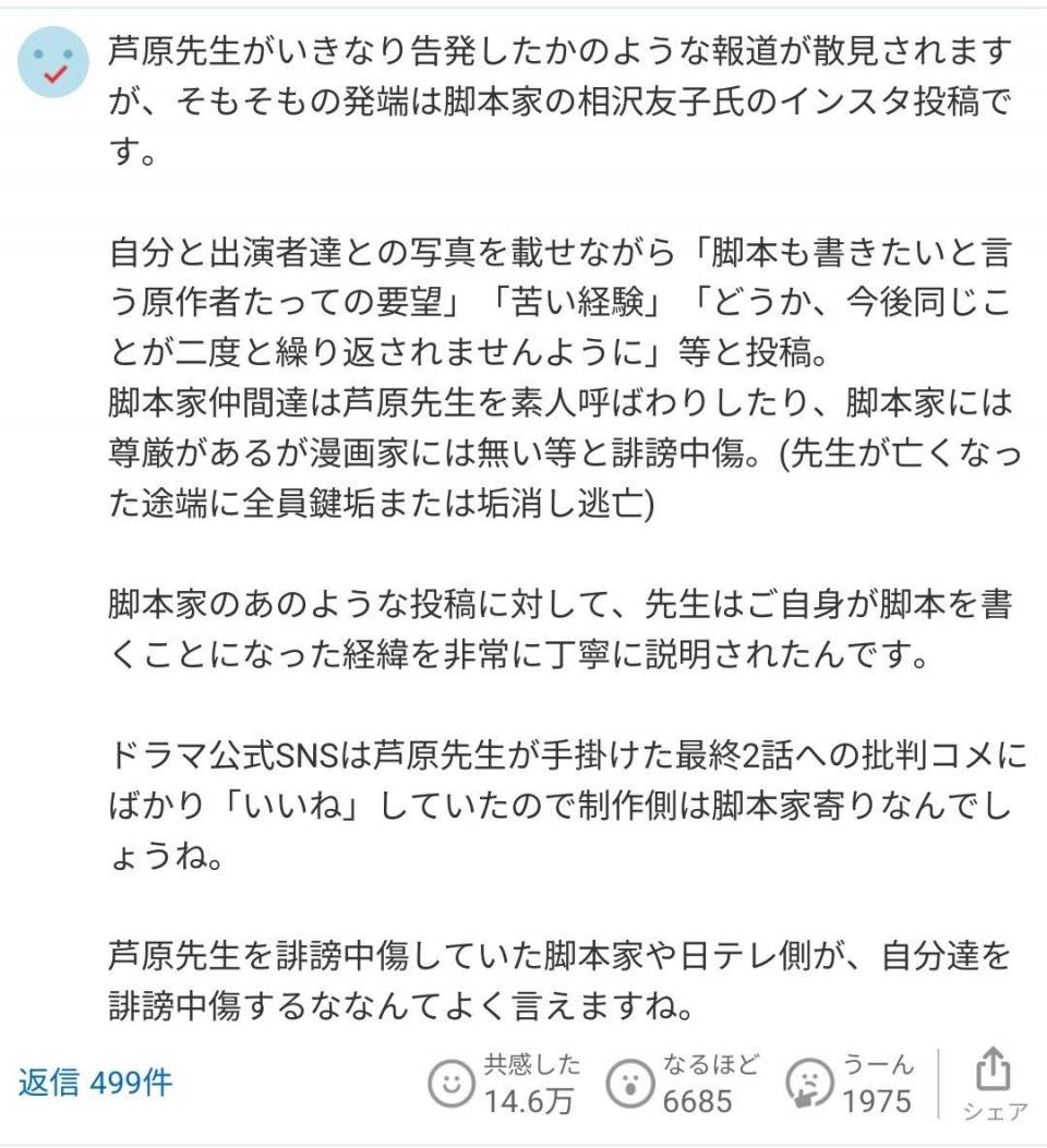 | … | 54無念Nameとしあき24/02/08(木)07:20:29No.1183827173芦原さん死去で小学館が社内説明会 日テレと良好関係、SNS運用に課題「痛恨の極み」 |