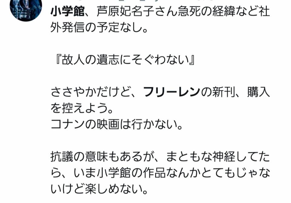 | … | 89無念Nameとしあき24/02/08(木)09:22:48No.1183841797いや小学館はひどく悲しんでるよ |