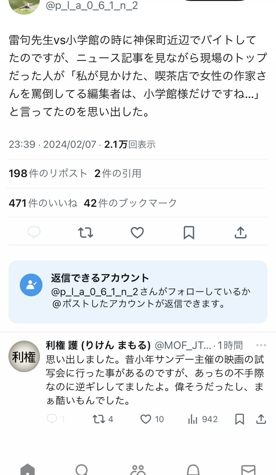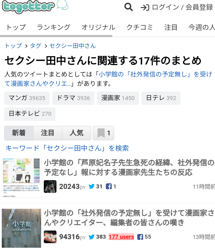 | … | 990無念Nameとしあき24/02/08(木)10:49:35No.1183856000小学館に赴いてる人いるが |