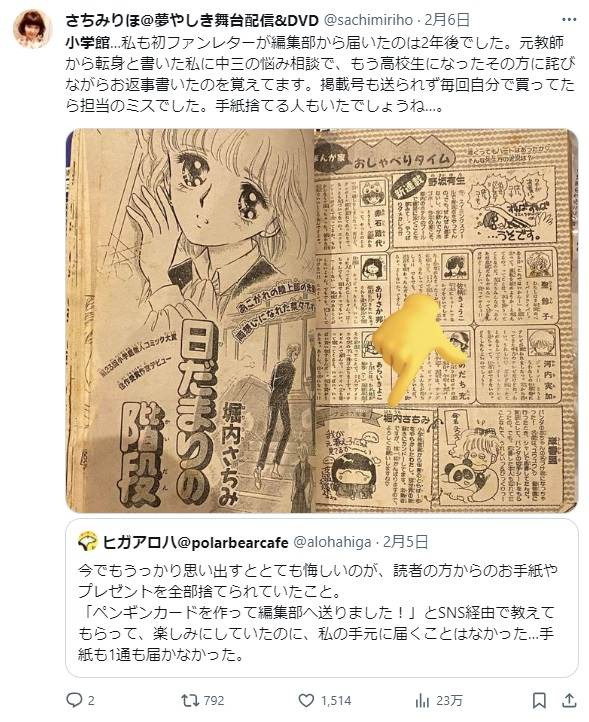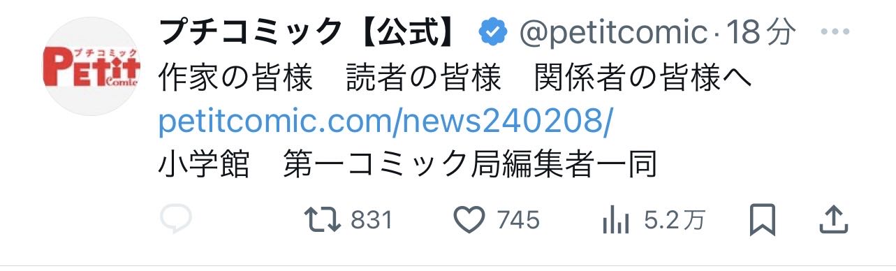| … | 43無念Nameとしあき24/02/08(木)16:32:06No.1183930067>小学館宣伝部Xのコメ欄閉じて炎上中 |