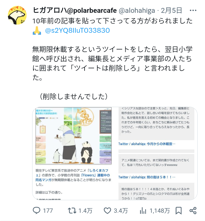 | … | 970無念Nameとしあき24/02/08(木)18:21:58No.1183958952小学館サイドは全部伝えてました |