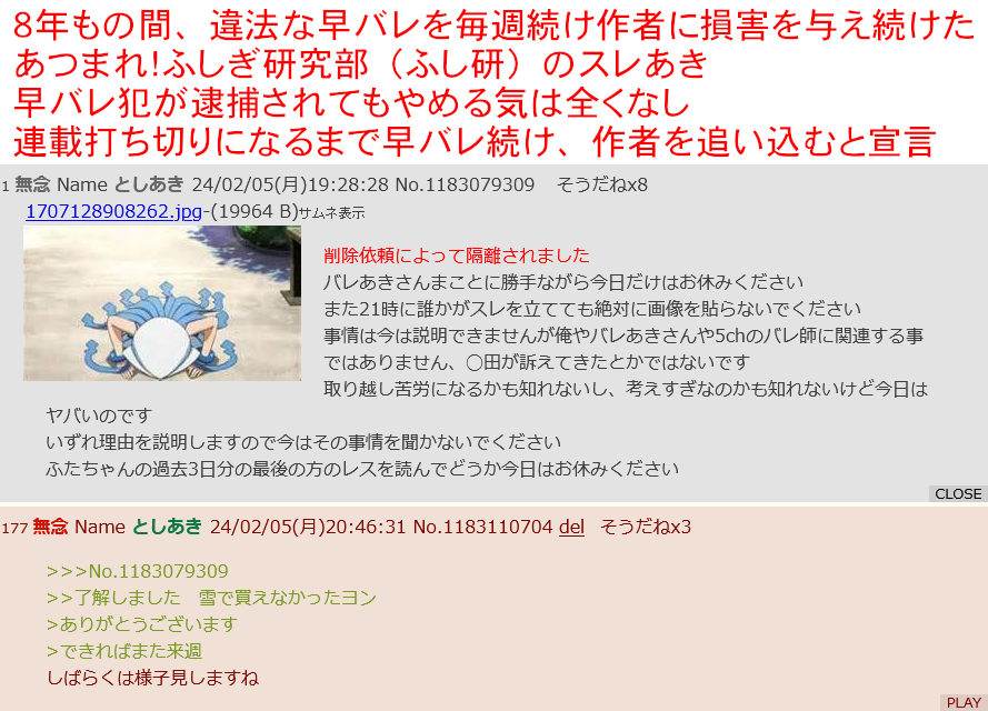 | … | 907無念Nameとしあき24/02/08(木)18:13:49No.1183956297内藤→叩くべきは集英社 |