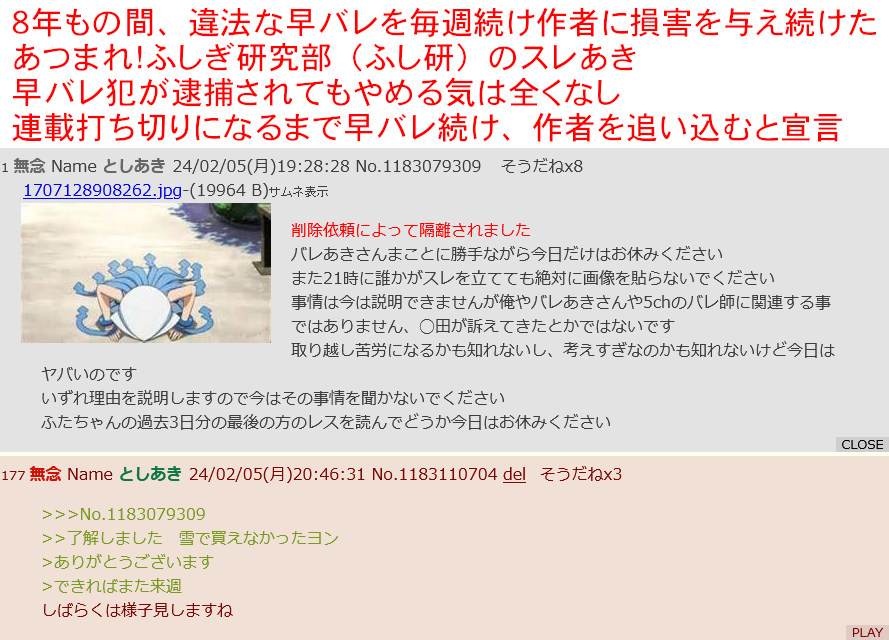 | … | 928無念Nameとしあき24/02/09(金)02:04:04No.1184113973アニメ化を阻止してやったと自画自賛のふし研のスレあき |