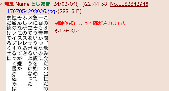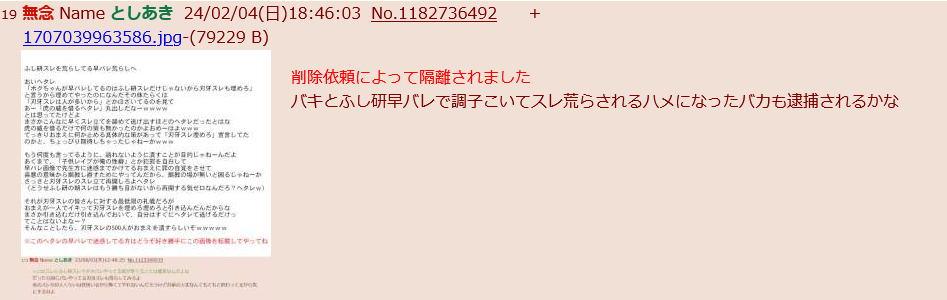 | … | 991無念Nameとしあき24/02/09(金)07:15:49No.1184132517 1707430549191.jpg-(141293 B) ![]() ふし研スレあき逮捕 |