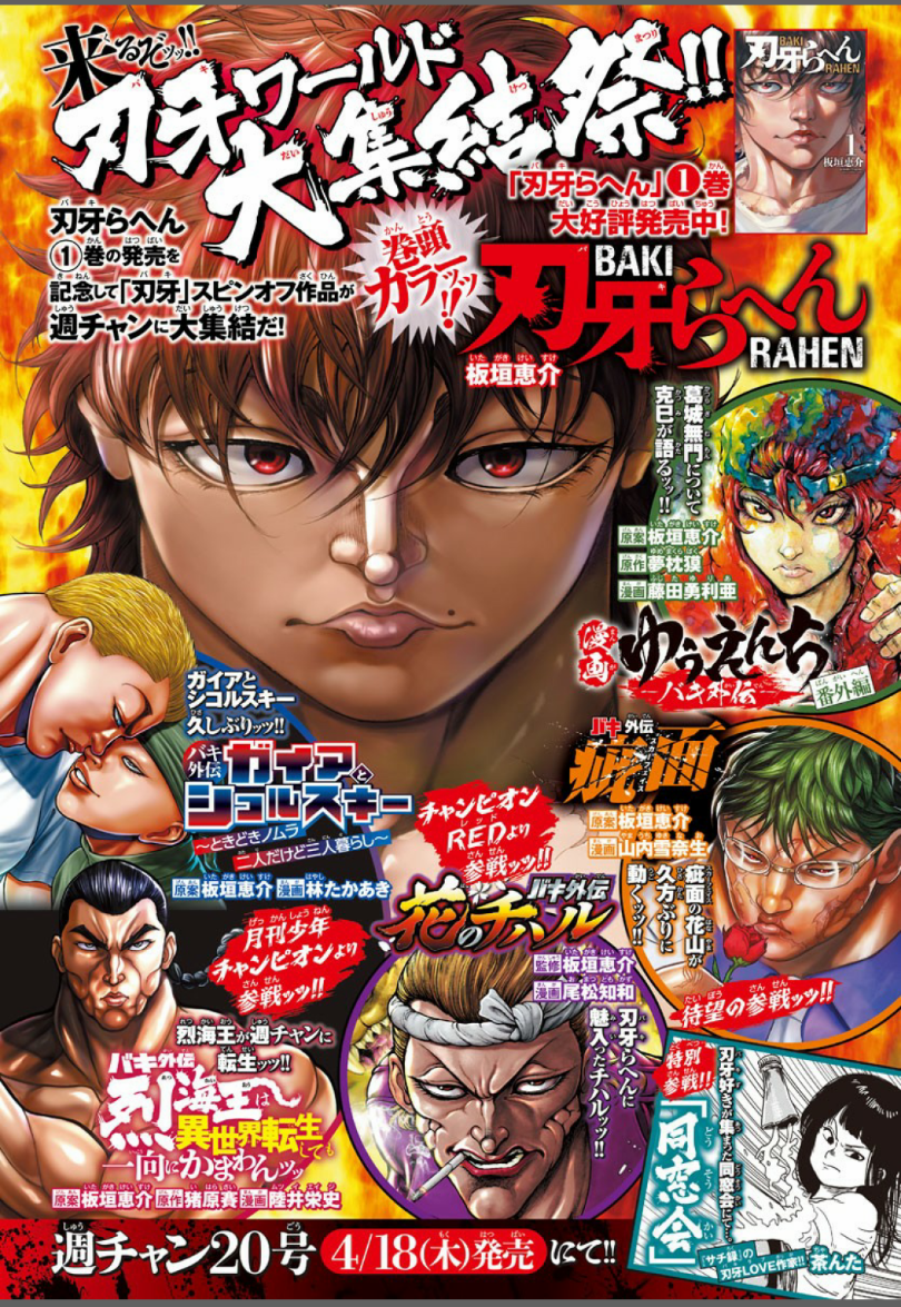 | … | 213無念Nameとしあき24/04/11(木)21:33:29 ID:vtTJI2LINo.1204796650>ゆうえんちはあと3年くらいはつづけられるかもしれが刃牙らへんがあまりにも休載しすぎなのでもう一つスピンオフが欲しい |