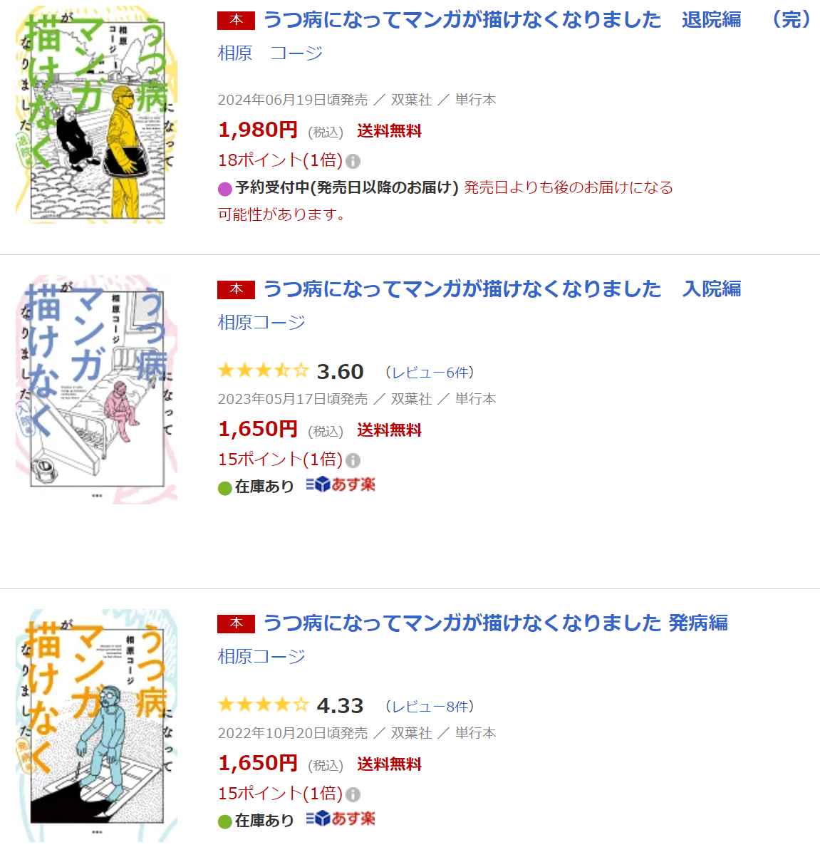 | … | 85無念Nameとしあき24/05/14(火)14:22:41No.1216617593>>妙に高いうつ病の本ってどれぐらい売れたの? |