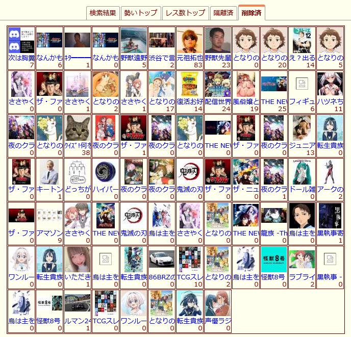 | … | 81無念Nameとしあき24/06/16(日)03:54:21No.1229549313>まず今期のアニメスレで荒らされてないスレある? |