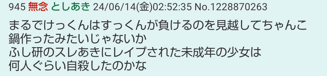 | … | 55無念Nameとしあき24/06/16(日)03:26:43No.1229547530コピペ荒らしだけでも何人もいるからな二次裏 |