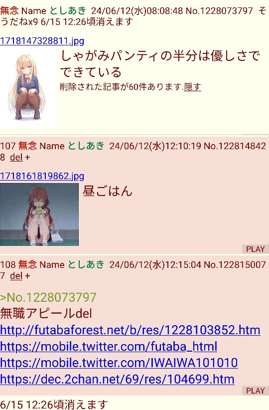 | … | 16無念Nameとしあき24/06/16(日)02:21:12No.1229540445>なんかちょくちょく復活してね |