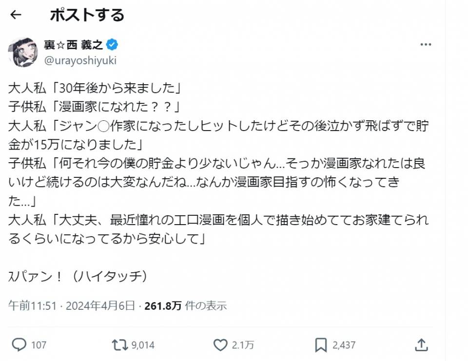| … | 38無念Nameとしあき24/07/01(月)08:48:31No.1233768325漫画家志望なんか真面目に働いたりせずに一発当てて |