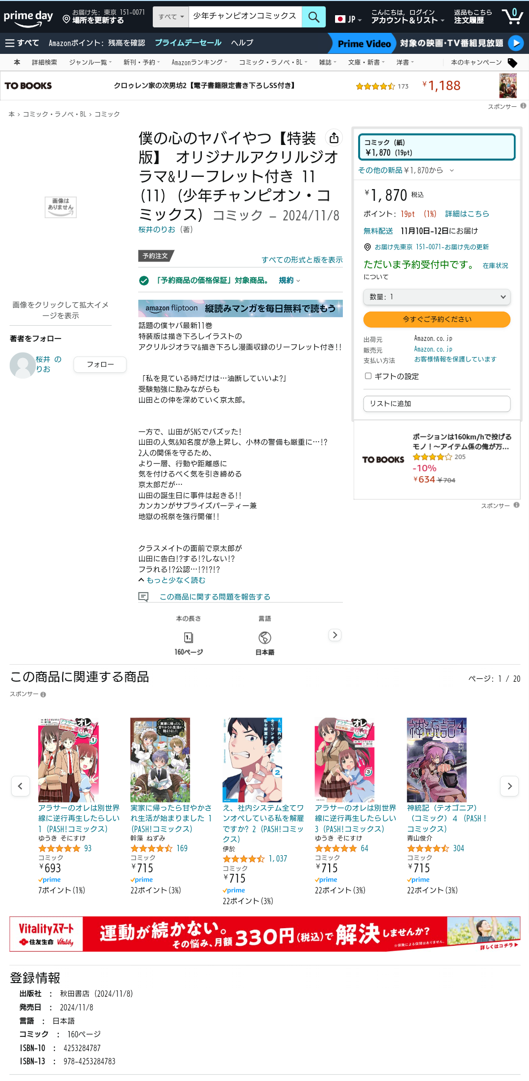 | … | 21無念Nameとしあき24/07/11(木)19:22:13 ID:y1Gxbqw2No.1236572932 1720693333215.png-(869197 B) ![]() >11月8日発売 僕の心のヤバイやつ11巻 |