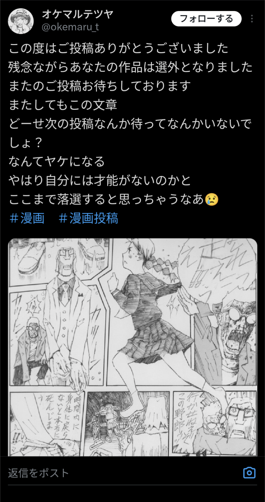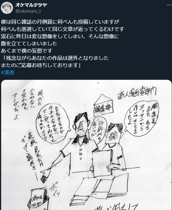 | … | 382無念Nameとしあき24/07/20(土)00:16:54No.1238839272>あんまり大きな声で言っちゃいけないけど年寄りの漫画家志望者って本当にひどいからな |