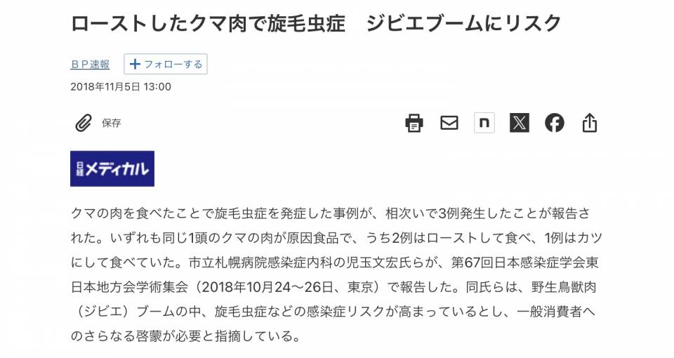 | … | 14無念Nameとしあき24/08/14(水)14:23:27No.1246051313熊肉の刺身も寄生虫いるからヤバいんだよな |