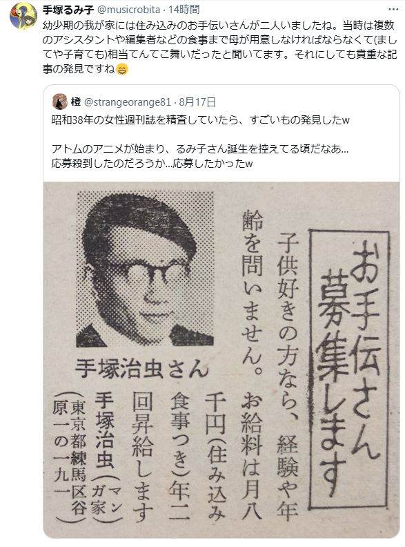 | … | 32無念Nameとしあき24/08/20(火)00:18:53No.1247675352 1724080733735.jpg-(98523 B) ![]() 鉄腕アトム放送開始の年の求人広告 |