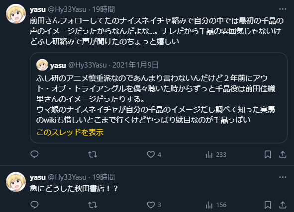 | … | 39無念Nameとしあき24/08/25(日)19:22:01No.1249237054なんで連載終わってからPVを!? |