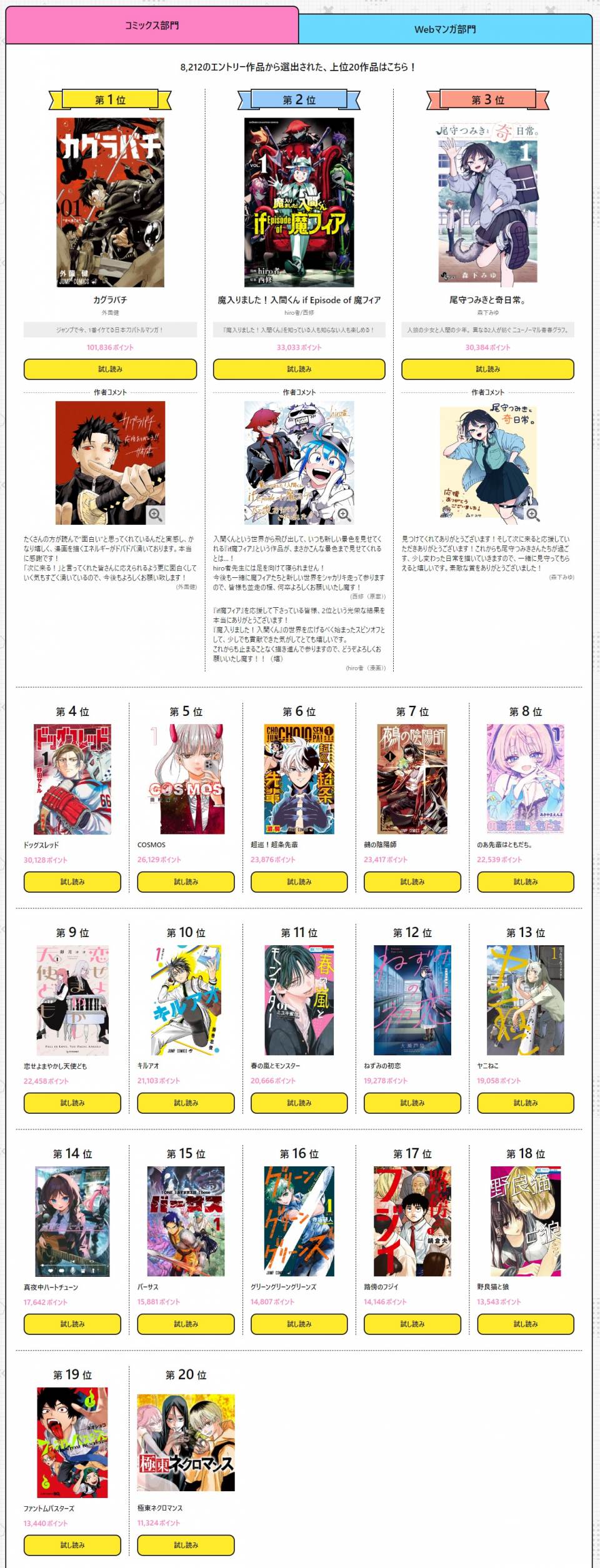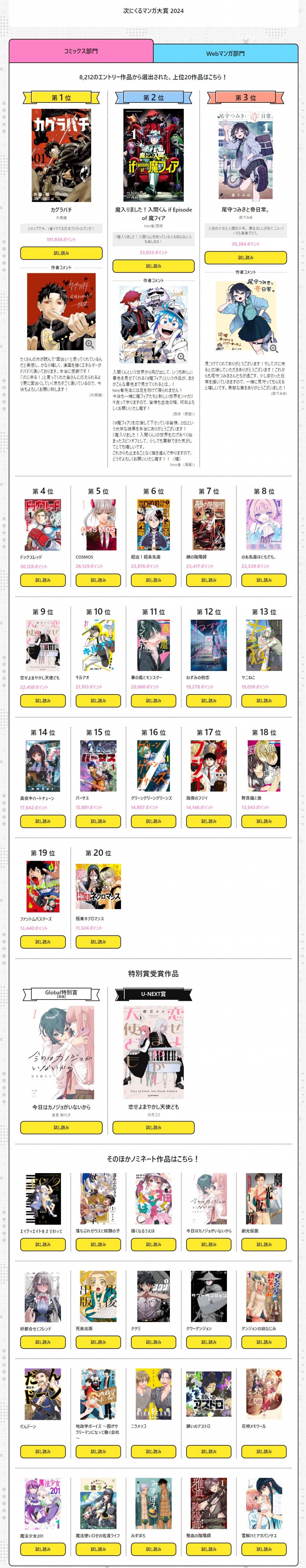 | … | 73無念Nameとしあき24/08/30(金)16:01:39No.1250532184 1725001299276.jpg-(566571 B) ![]() >WEB部門で同一作者三作品ランクインが地味にすげえ |