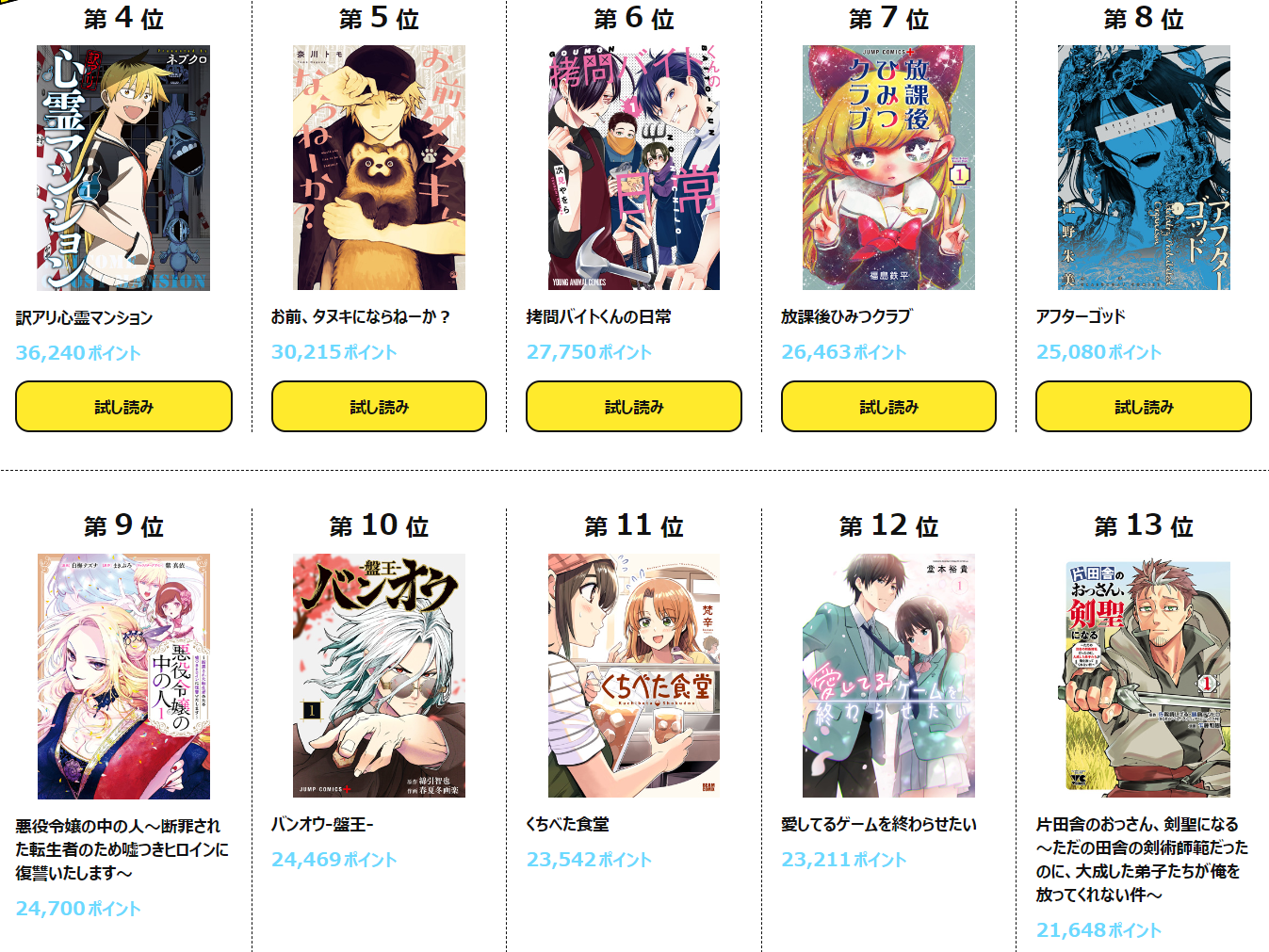| … | 74無念Nameとしあき24/08/30(金)16:02:18No.1250532327マンガワンから10位以内2作品は頑張ってんな |