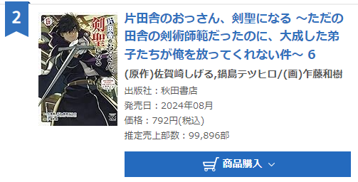 | … | 603無念Nameとしあき24/08/30(金)19:29:02No.12505820443巻35万部から2か月で累計60万部だぞ |