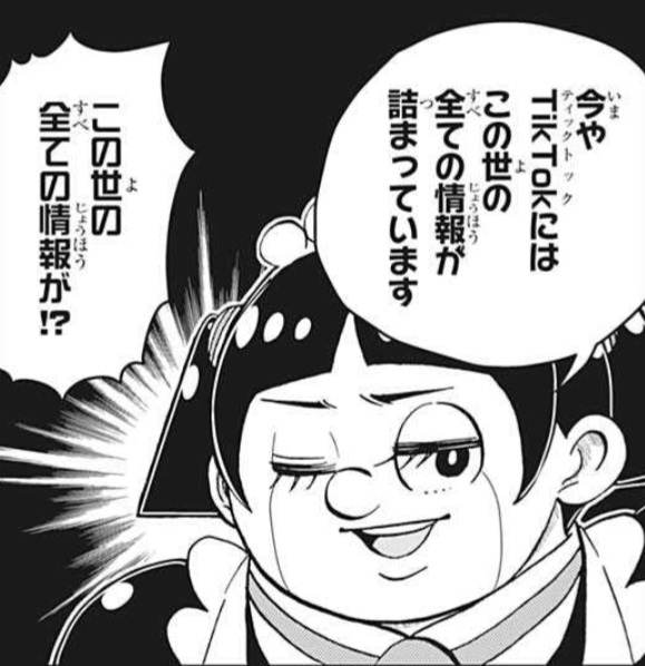 | … | 142無念Nameとしあき24/09/08(日)19:28:23No.1253107953>tiktokにこの世の全ての情報が詰まってるから雑誌なんかいらないんだ |