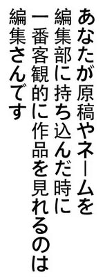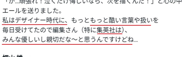 | … | 557無念Nameとしあき24/09/12(木)17:14:39No.1254158224>作家が編集についていくということが多々ある |