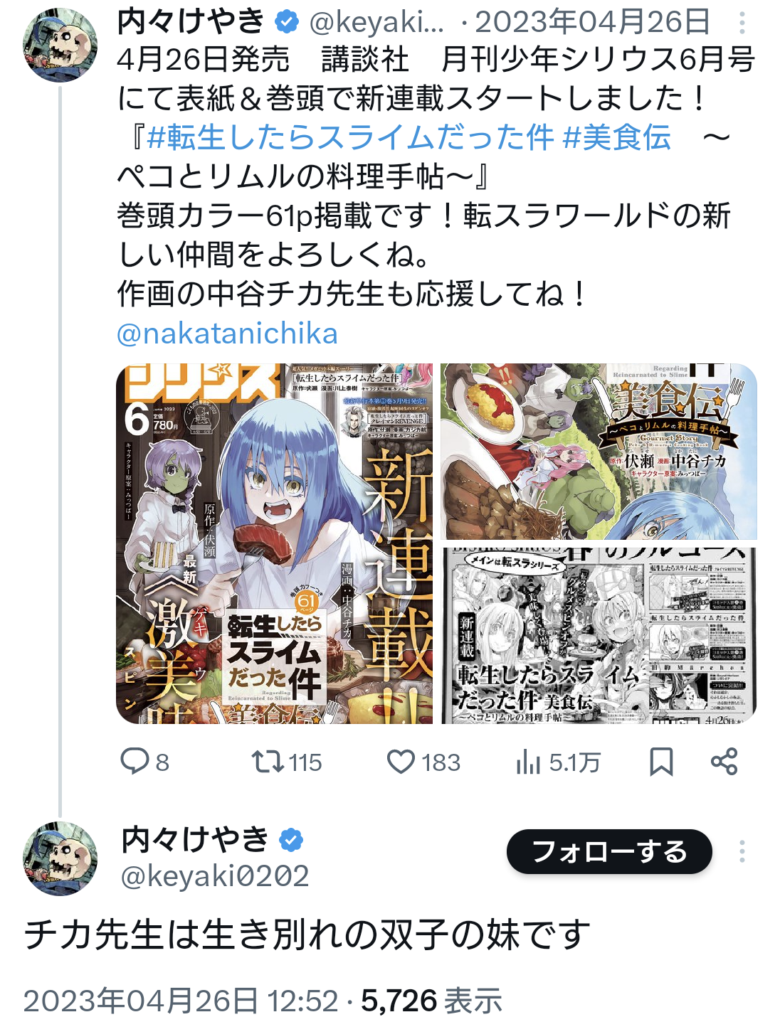 | … | 49無念Nameとしあき24/09/23(月)16:55:19No.1257498553転スラのスピンオフをしてる人は生き別れの妹だから… |