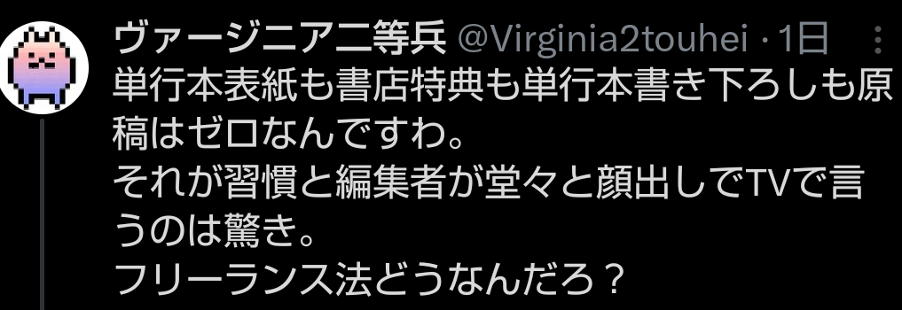 | … | 12無念Nameとしあき24/10/22(火)08:34:48No.1265590981>単行本は作家の著作物なので |