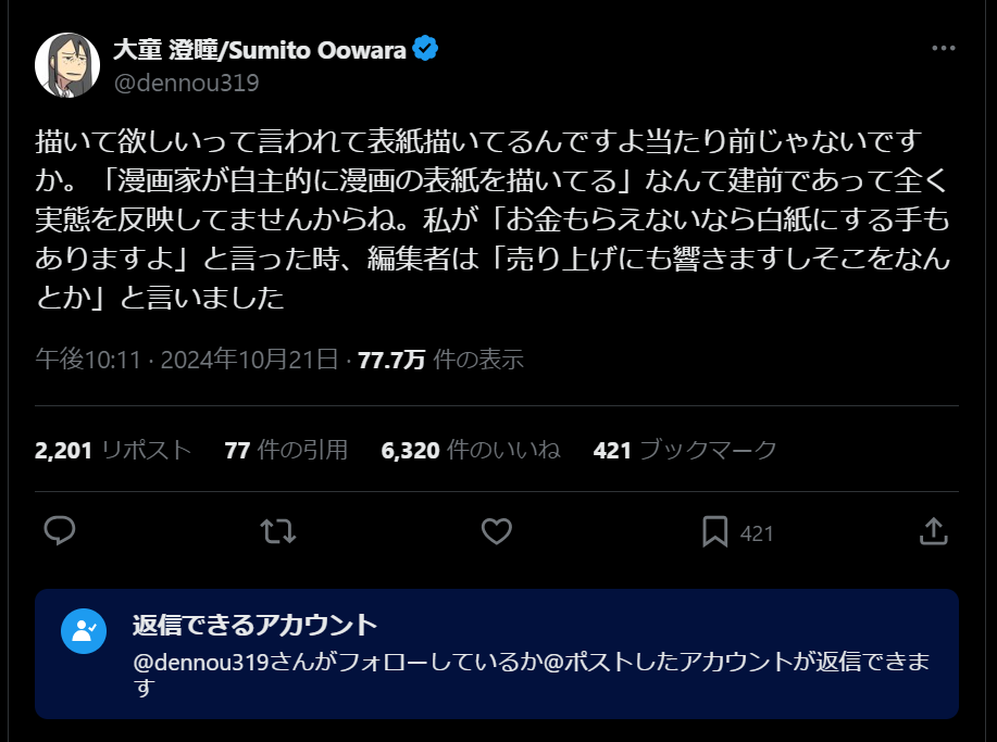 | … | 86無念Nameとしあき24/10/22(火)09:17:13No.1265595598漫画家はサラリーマンではないからの |