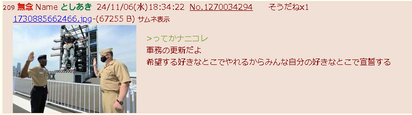 | … | 24無念Nameとしあき24/11/06(水)19:34:23No.1270053254まあガンダムの前で宣誓するとアガるのは分かる |