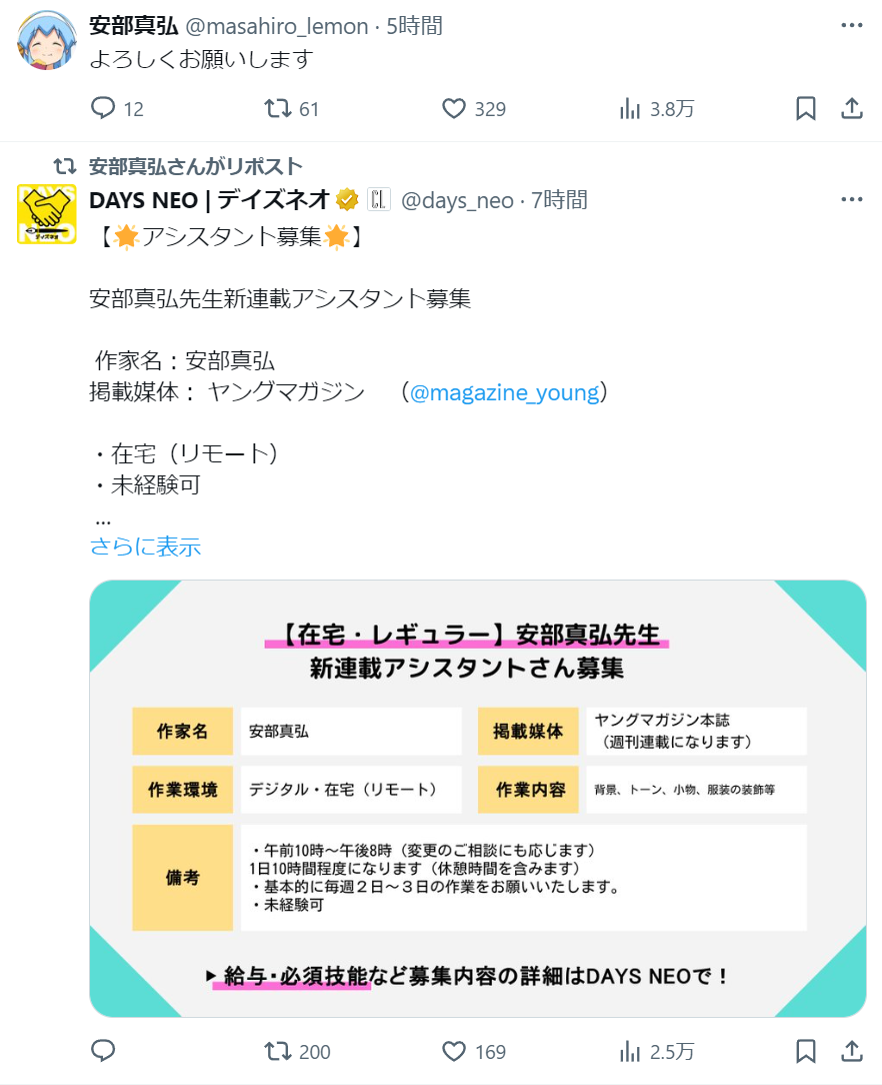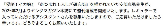 | … | 4無念Nameとしあき24/12/09(月)19:18:15No.1279071659安部先生の次回作はヤンマガでとか… |