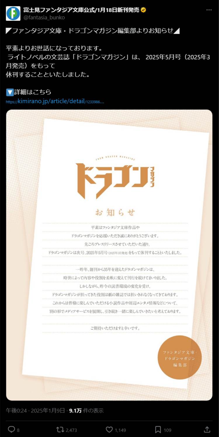 ドラゴンマガジン休刊このスレは古いので、もうすぐ消えます。