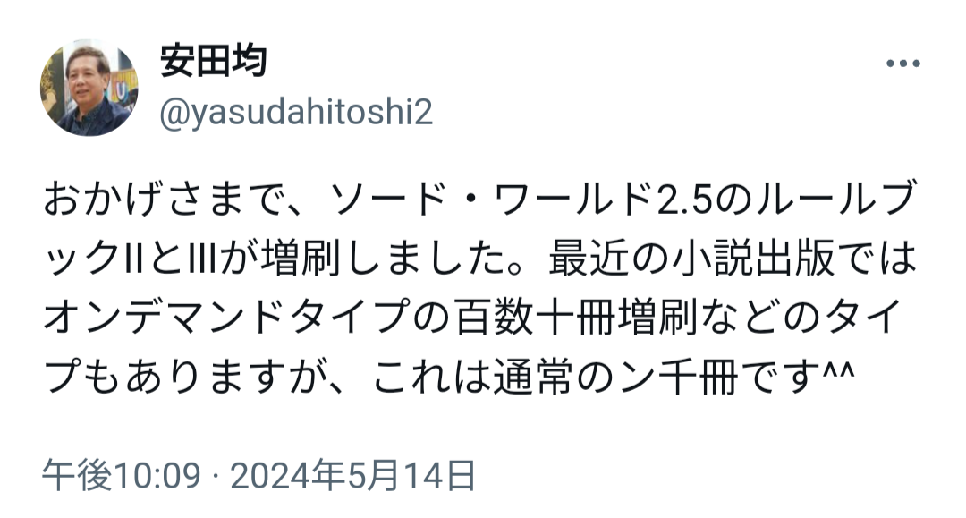 | … | 95無念Nameとしあき25/01/09(木)14:22:46No.1286774163>ソードワールドだけじゃなくて |