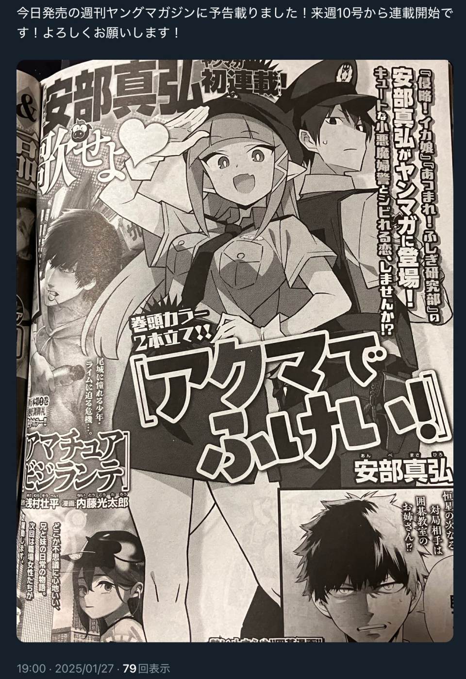 | … | 1無念Nameとしあき25/01/27(月)18:29:04No.1291619204 1737970144581.jpg-(906605 B) ![]() 安部真弘先生の新連載 |