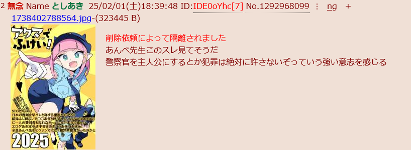 | … | 124無念Nameとしあき25/02/02(日)16:57:29No.1293242364警官職だとエロの幅やりづらくねぇかなぁ |