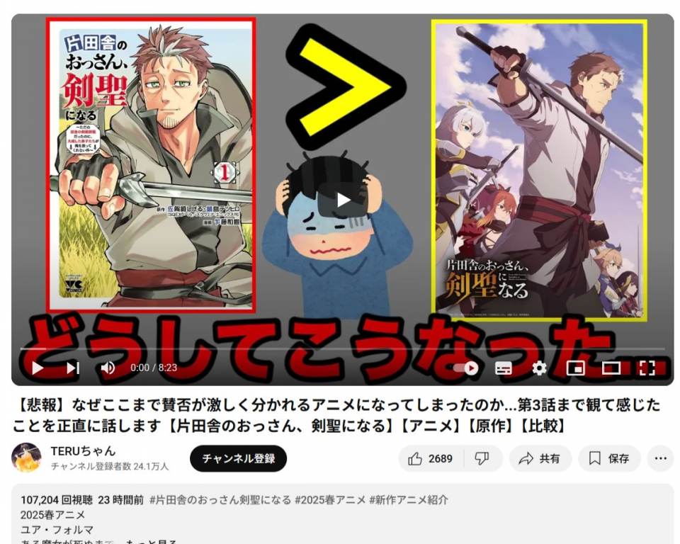 | … | 52無念Nameとしあき25/04/23(水)01:49:12No.1313147123>スクエニのアニメ化だから続編やんないどころか漫画を大きく追い越すからアニメ化の体裁を取った秋田コミカライズのコンテンツ潰しなんだよなコレ |
