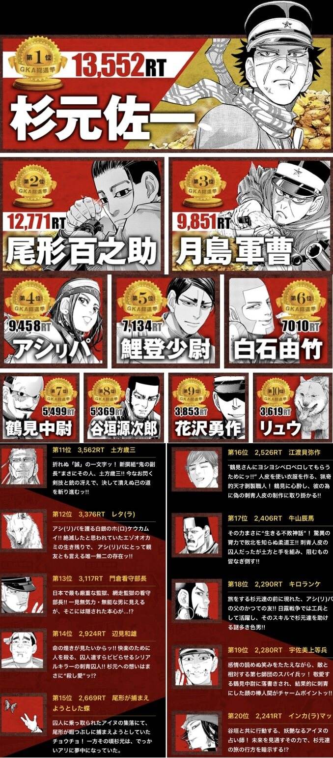 | … | 8無念Nameとしあき25/05/14(水)05:45:24No.1318837783 1747169124664.jpg-(332573 B) ![]() 今もう一回やったら谷垣はもっと上に来そうだけど杉元は不動だと思う |
