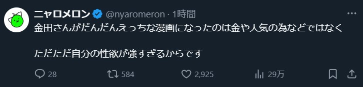 | … | 47無念Nameとしあき25/06/18(水)01:57:34No.1328575416ニャロメロンみたいな作風でもエロ描きたくなるものなんだな… |
