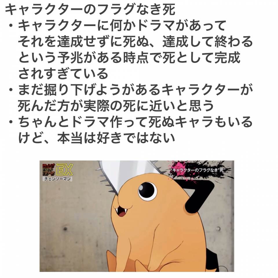 | … | 782無念Nameとしあき25/07/11(金)09:16:51No.1334640129>>チェンソー2部は田中脊髄剣がピークだった |