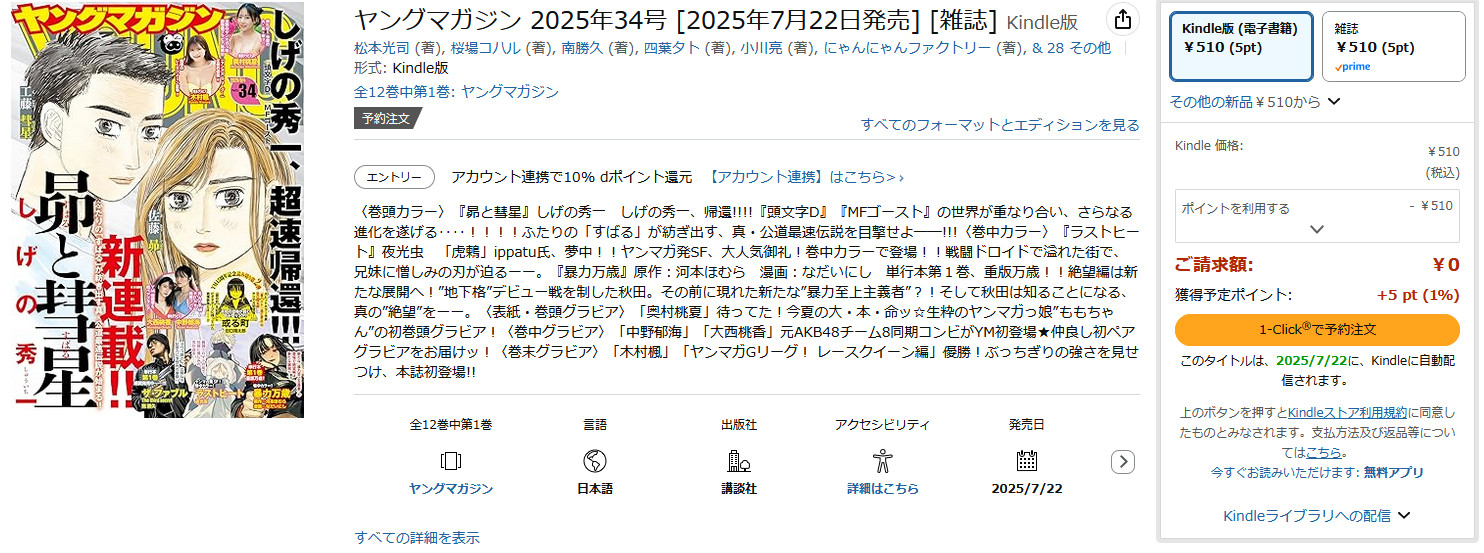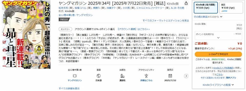 | … | 10無念Nameとしあき25/07/21(月)18:34:10No.1337291926>>祝日だから今日はヤンマガ売って無かったよ… |