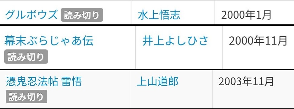 | … | 386無念Nameとしあき25/08/03(日)15:12:23No.1340423256 1754201543334.jpg-(51015 B) ![]() 読み切り一覧見てるとアンタも描いてたのかってのがちらほら |
