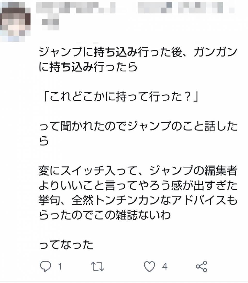 | … | 77無念Nameとしあき25/08/29(金)11:21:26No.1347045300>ジャンプといえども進撃の巨人をボツにしてたりするし、あちこち持ち込まないとだめよね |