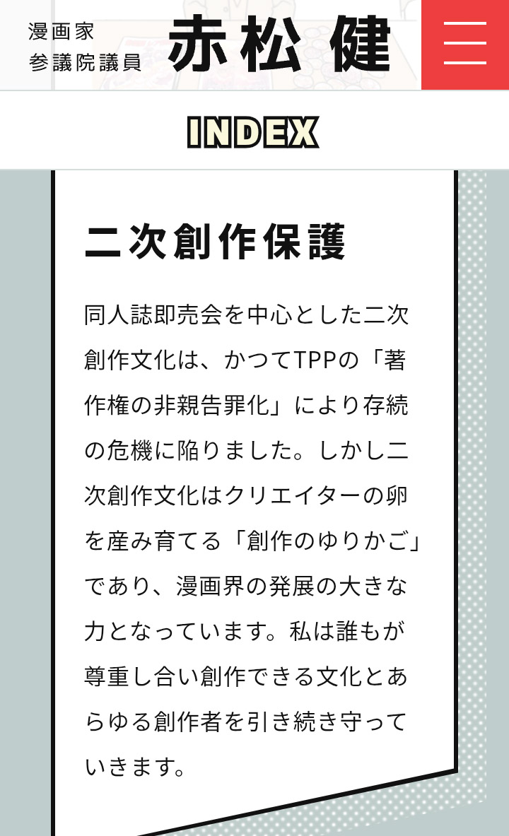 | … | 240無念Nameとしあき25/10/22(水)15:17:58No.1360576539>赤松がやりたいのは二次創作保護を謳ったソフ倫シールみたいな利権だな |