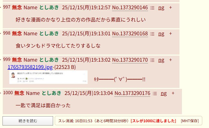 | … | 995無念Nameとしあき25/12/15(月)20:48:14No.1373314843>みんなジャン読んでないんだなって… |